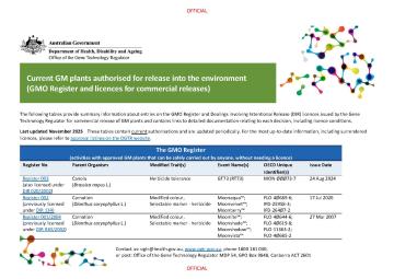 Current GM plants authorised for release into the environment (GMO Register and licences for commercial releases)