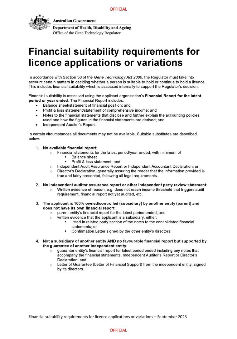 Documents Download Financial suitability requirements for applicants as Word - 82.01 KB Download Financial suitability requirements for applicants as PDF - 178.95 KB Publication type: Fact sheet Publication date: September 2025
