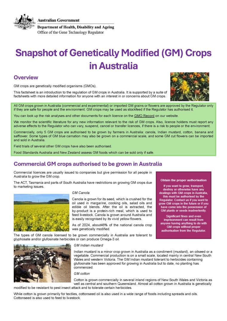 Snapshot of Genetically Modified (GM) Crops in Australia