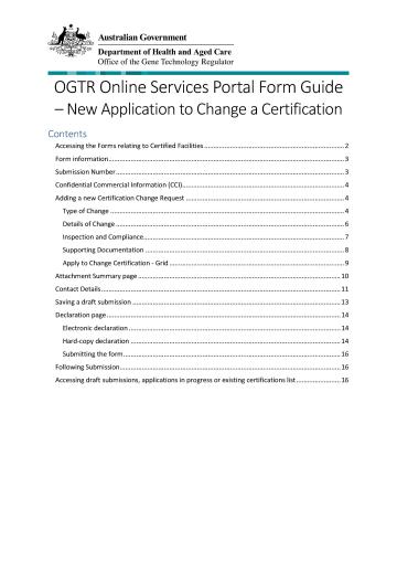 OGTR Online Services Portal Form Guide – New Application to Change a Certification
